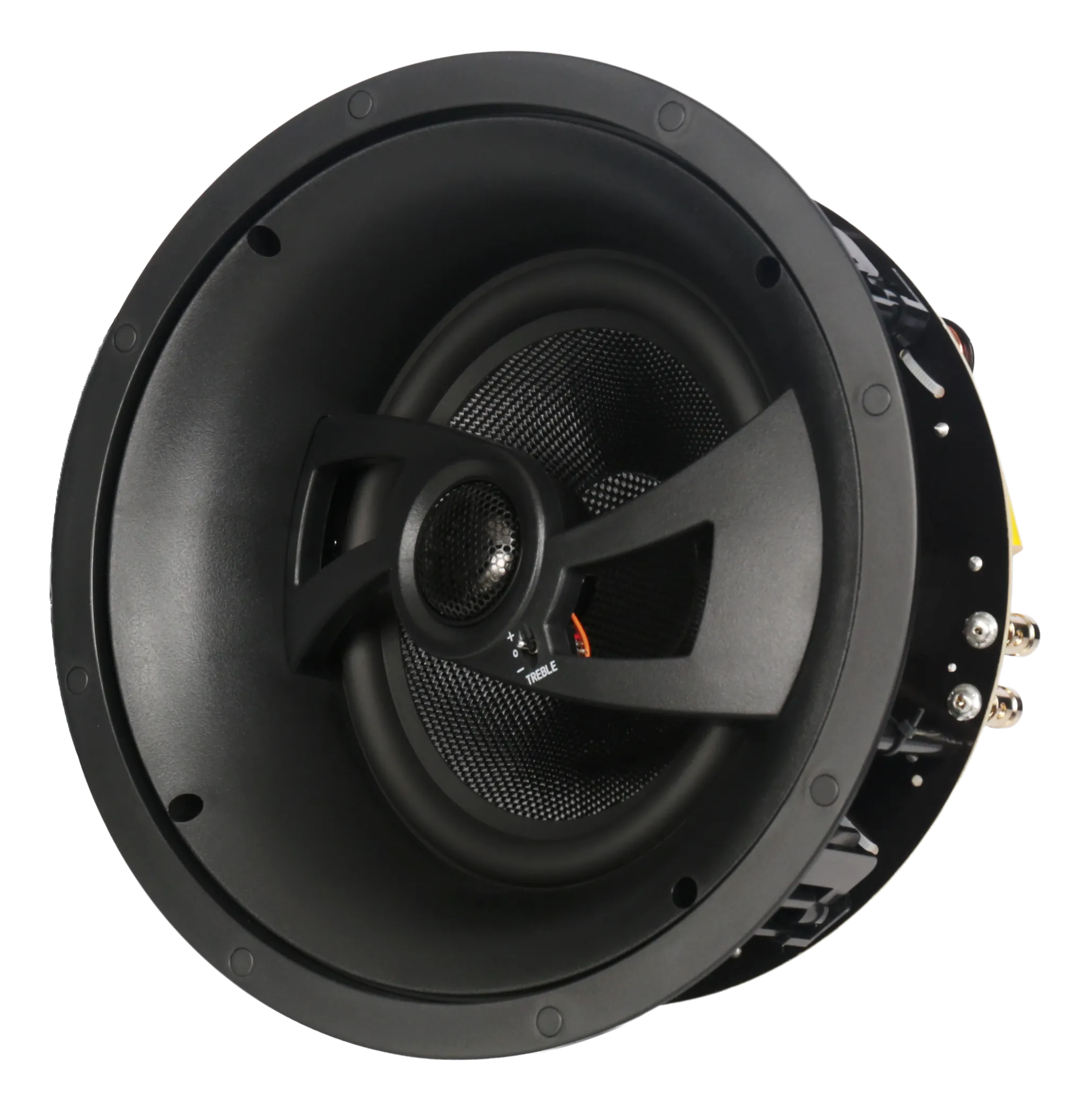 The E-IC6 uses a coaxial angled driver layout to ensure clear, directional sound in ceiling-mounted Atmos/DTS:X roles. Its 6.5" fiberglass woofer and titanium dome tweeter pair naturally with INWALL models—creating a tonally matched and immersive sound field.
