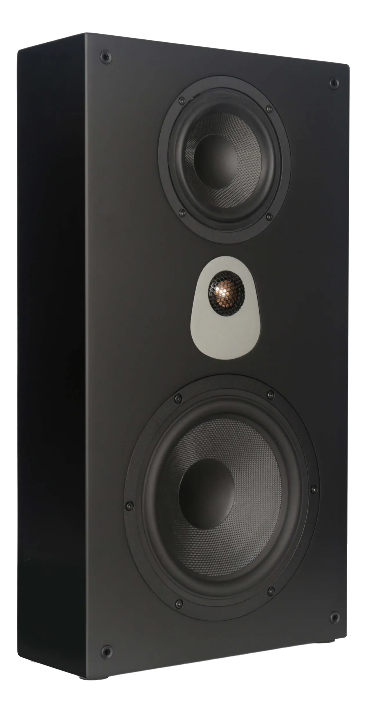 As the largest and most dynamic model in the series, the E-IW82 delivers the cinematic scale and low-end authority typically reserved for far bulkier speakers. With dual 8" woofers, dual 4" mids, and a centered aluminum-magnesium tweeter—each in isolated chambers—it offers explosive dynamics, refined detail, and pinpoint imaging. Designed for baffle wall or on-wall use, this sealed 3-way speaker is the ideal LCR for purpose-built home cinemas.