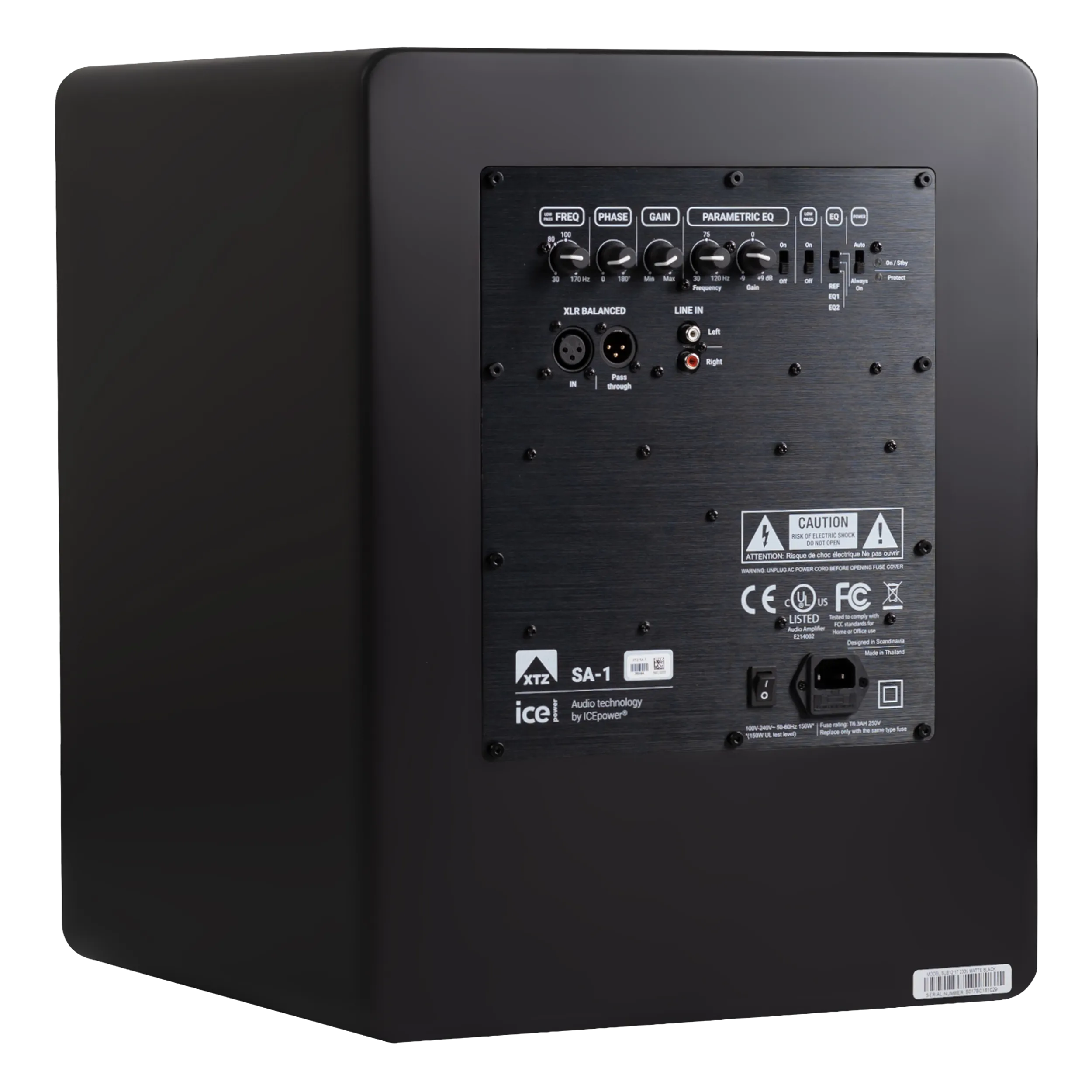 The SA-1 amplifier uses ICEpower® Class D technology with exceptional dynamic capability and low distortion. With 700W RMS, 1045W peak, and a 117 dB signal-to-noise ratio, it offers reference-level performance and precise control over the driver.
