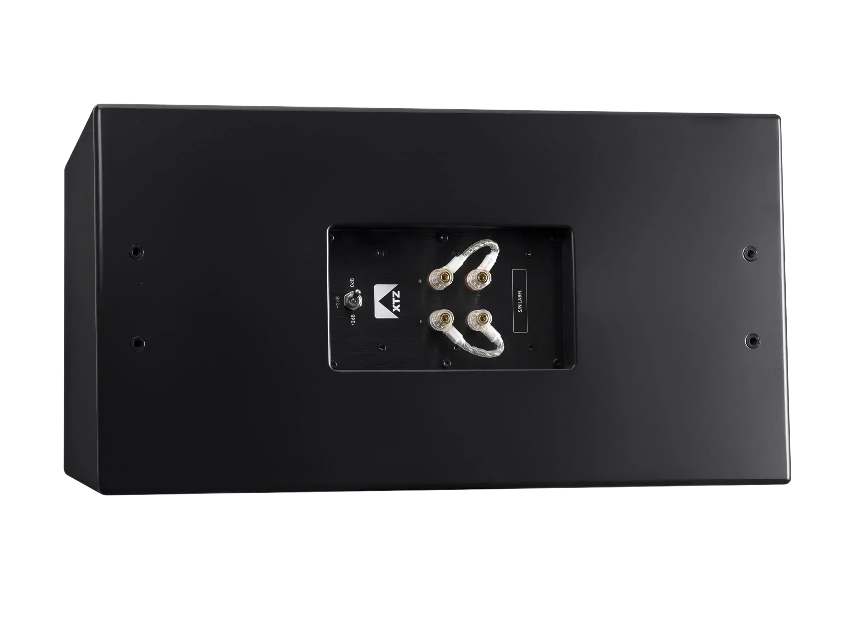 A rear-mounted toggle allows adjustment of the tweeter level by ±2 dB. This compensates for bright or absorptive rooms and tailors tonal balance to your preferences.
