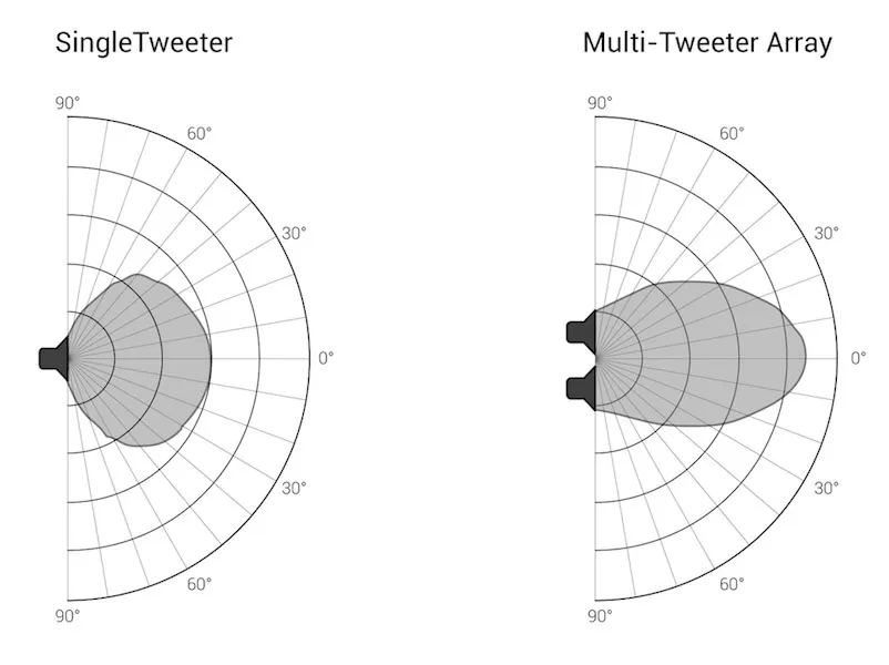 Enhances vertical dispersion and reduces floor/ceiling reflections.