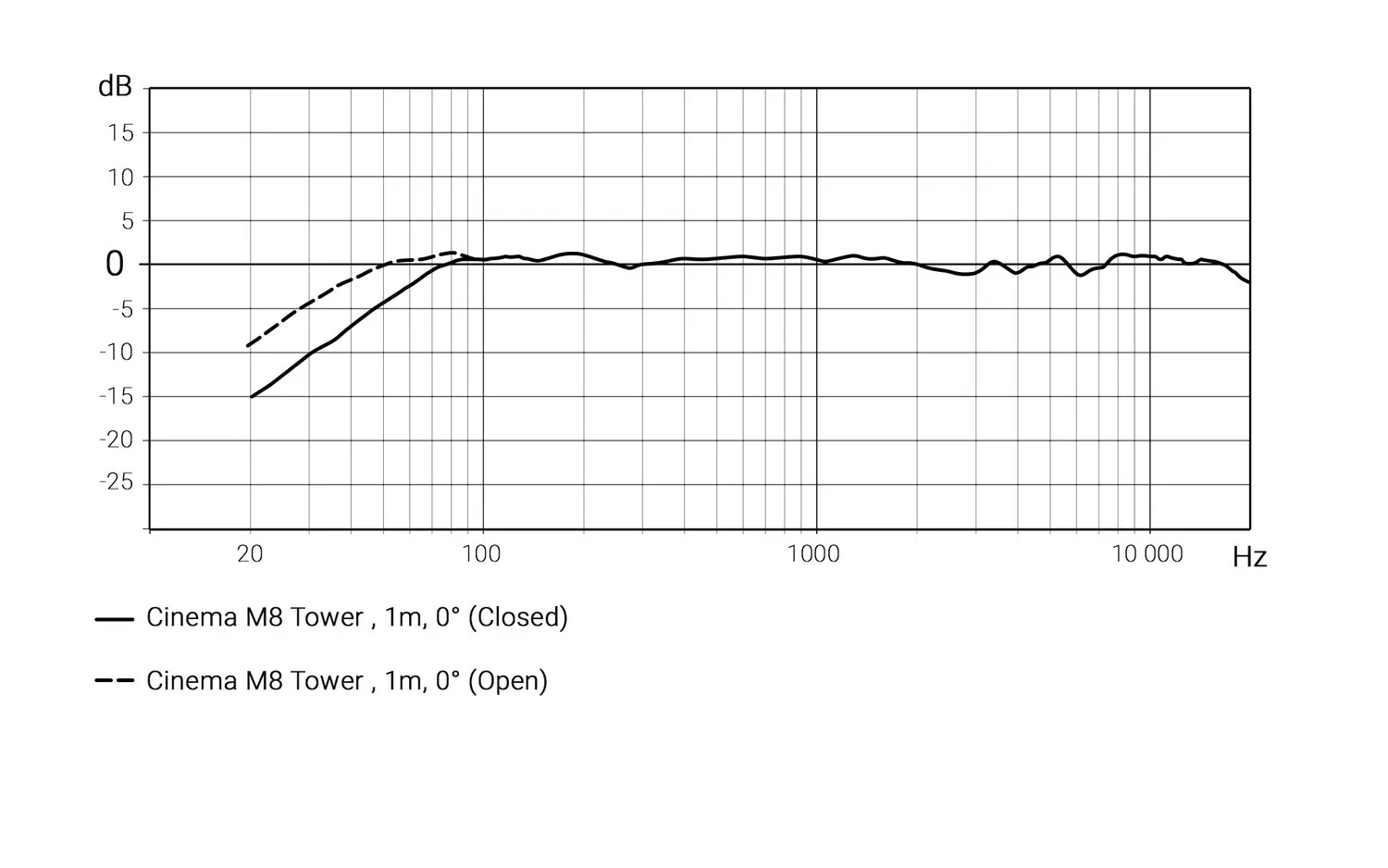 Thanks to its floorstanding design the M8 Tower digs deeper than its bookshelf counterpartreaching all the way down to 29 Hz. This allows it to reproduce everything from the subtlety of whispered dialogue to the full force of an on-screen explosion with total control and claritycreating an uncompromised immersive experience even in rooms up to 120 m².
